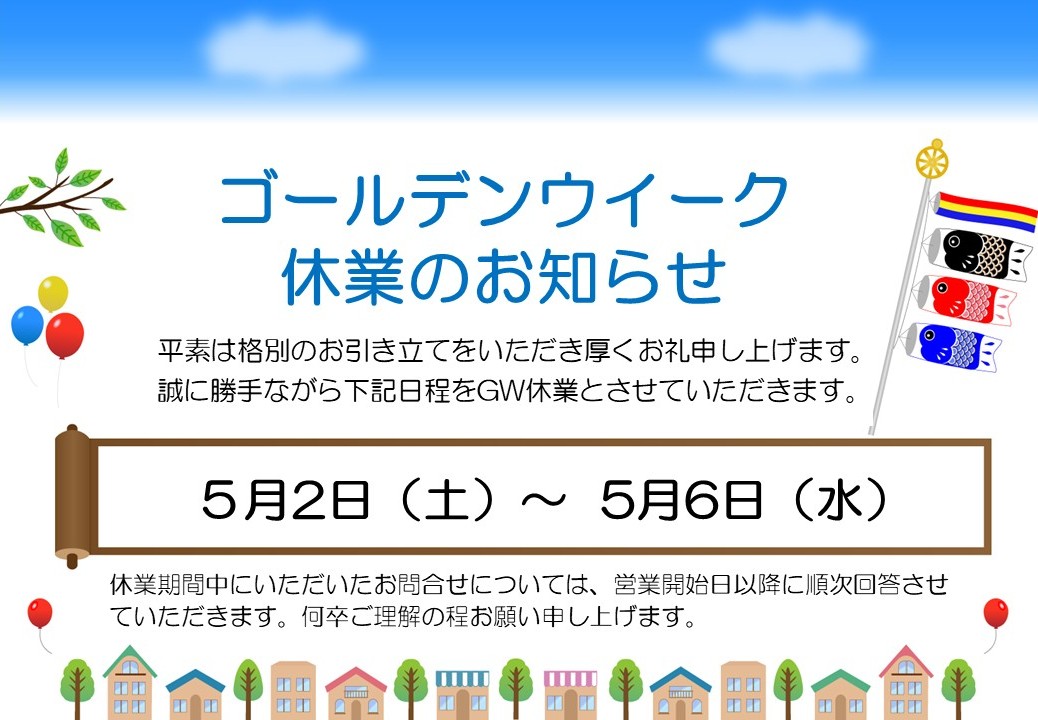 ゴールデンウィーク休業のお知らせ